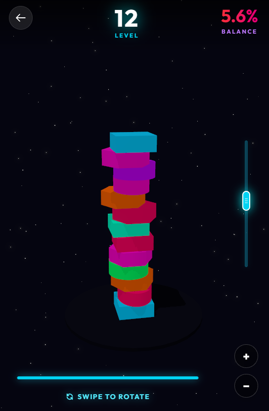 Use the camera controls to view your tower from any angle and find the perfect drop timing.